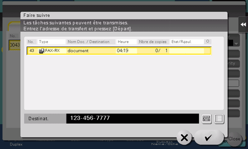 Sélectionnez une tâche à réacheminer, spécifiez la destination de transmission, puis tapez sur [Valider].