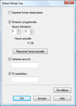 Quand vous cliquez sur [Retourner heure actuelle], l'heure d'horloge actuelle du PC est retournée dans [Heure d'émission].