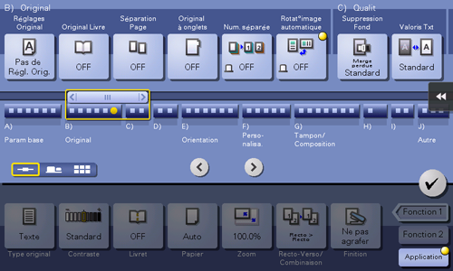 [Taux zoom] | Permet de copier au taux de zoom enregistré. Si vous tapez sur [Définir Zoom], vous pouvez modifier le taux de zoom enregistré. |