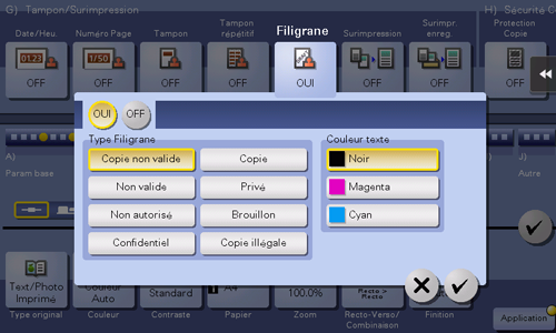 [ON]/[OFF] | Sélectionnez [OUI] pour imprimer un filigrane. |