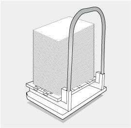 Puede apilarse un gran número de documentos impresos en un apilador y transportarlos como si fuera un carro.