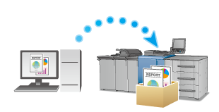 La función Reten.HDD guarda temporalmente un trabajo de impresión en el disco duro. Para imprimir un trabajo guardado temporalmente en el disco duro (Retener tarea), se especifica el trabajo en el panel táctil o en la aplicación de administración de trabajos "Job Centro", de modo que la máquina también puede utilizarse para la distribución de documentos.