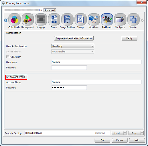 Si introduce un código de acceso incorrecto en la configuración de [Configuración Seguimiento de Cuenta] de la impresora o no ha activado el [Configuración Seguimiento de Cuenta], no podrá ser autenticado por la impresora y la tarea se omitirá al imprimir.