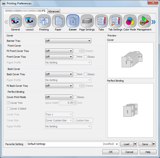 [Bandeja de Portadas] | [Desactivado], bandejas 1 a 5, bandeja manual, bandejas PI 1 y 2, bandeja de portadas del encuadernador | Seleccione una bandeja de portadas para un encuadernador. |