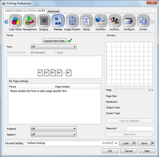 [Patrón de impresión] | [Repetitivo], [Una vez] | Seleccione [Repetitivo] para superponer de forma repetitiva todas las páginas del formulario ordenadas desde la primera página en un documento de impresión. Seleccione [Una vez] para superponer una sola vez todas las páginas del formulario ordenadas desde la primera página en un documento de impresión. |