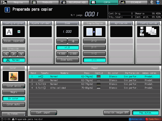 Pulse la ficha [COPIA] para mostrar la pantalla [COPIA].