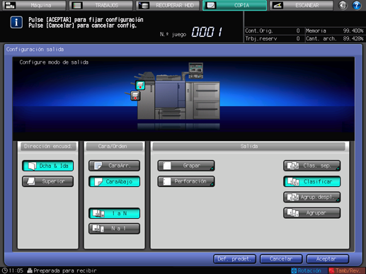 Pulse [Aceptar] en la pantalla [Configuración salida].