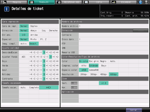 Pueden comprobarse detalles de cada tarea en la pantalla [Detalles de ticket].