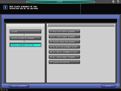 La pantalla vuelve a la pantalla [Menú Ajuste grapadora de lomo].
