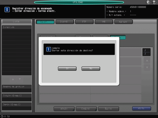 4. Seleccione el destino y, a continuación, pulse [Borrar].
