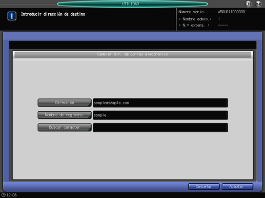 7. Compruebe que la información introducida sea correcta y, a continuación, pulse [Aceptar].