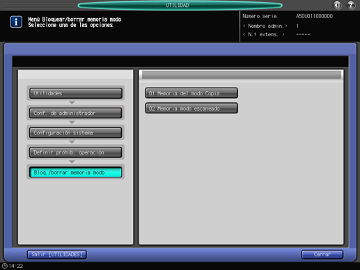 En cualquiera de los dos casos, vuelve a aparecer la pantalla [Menú Bloquear/borrar memoria modo].