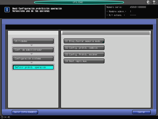 En ambos casos, la pantalla vuelve a [Menú Configuración prohibición operación].