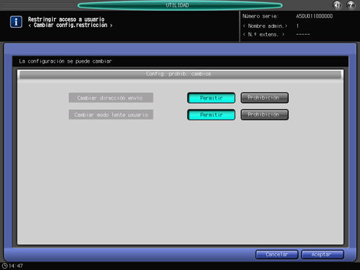 [Cambiar dirección envío] | Permita o prohíba la adición, edición y eliminación de los destinos de escaneado. | |