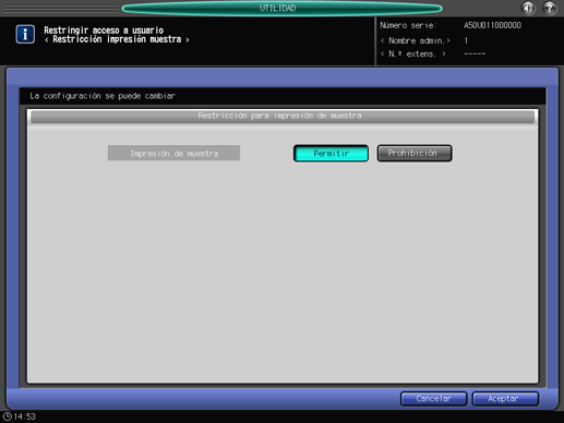 Especifique si se debe permitir el uso de la función de impresión de muestra.