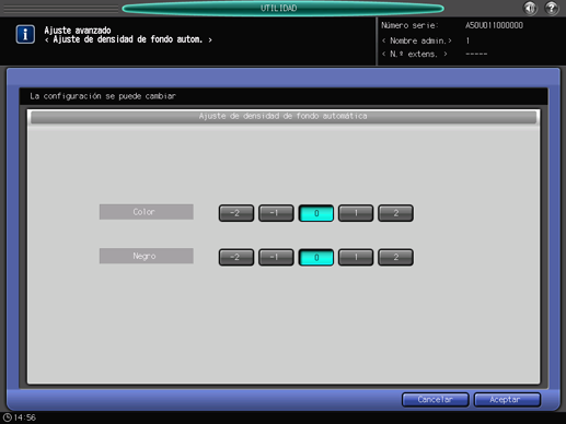 Cambie el nivel de densidad de negro/color que se va a aplicar cuando se seleccione [Automático] para [Ajustar fondo] en [Ajuste calidad] en la pantalla [COPIA].