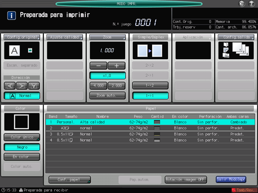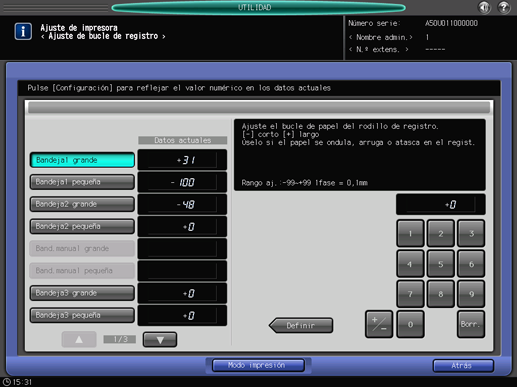 Si se requiere algún ajuste, pulse [Salir ModoImpr] para volver a la pantalla [Ajuste de bucle de registro].