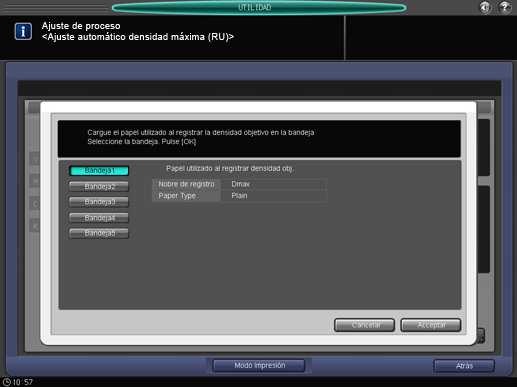 Tenga en cuenta que el perfil de papel de la bandeja sigue en el que se ha utilizado para registrar una densidad deseada.