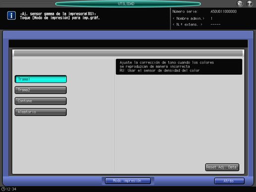 • Para reiniciar el valor de ajuste del sensor de la trama seleccionada, pulse [Reset Adj. Data].
