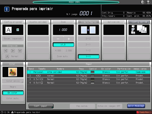 5. Seleccione la bandeja que se usará para el ajuste y pulse Inicio en el panel de control.