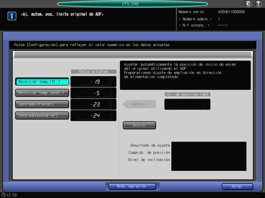 Se visualiza la pantalla [Aj. autom. pos. límite original de ADF].