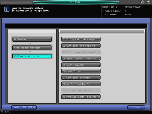 Siga el procedimiento descrito en Conf. de administrador para visualizar la pantalla [Menú Configuración administrador máquina].