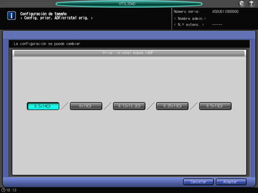 Indique los tamaños estándar normalmente no detectables por el ADF o cristal de originales para evitar que se detecten otros tamaños similares en lugar de ésos.