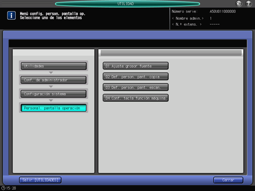 En ambos casos, la pantalla vuelve a [Menú config. person. pantalla op.].