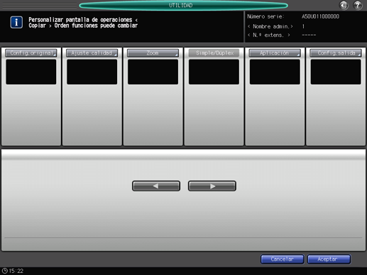 Cambie el orden de visualización de los elementos de configuración que se muestran en la mitad superior de la pantalla de copia.