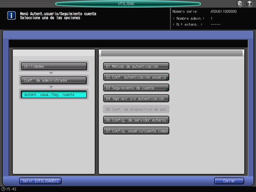 Siga el procedimiento descrito en Conf. de administrador para visualizar la pantalla [Menú Configuración administrador máquina].