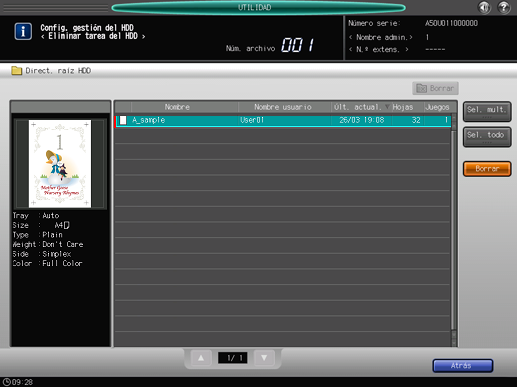 Inicio Configuración y ajustesElim. tarea HDD: Eliminación de tareas guardadas en el HDD