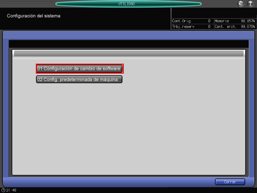 Pulse [Configuración del sistema] y [Configuración de cambio de software] de forma consecutiva.