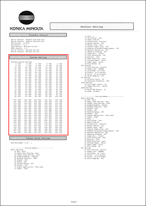 Además de la configuración de cambio 40, debería permitirse la configuración de la posición de impresión (Delantera/Centro/Trasera) de PageScope Direct Print. |