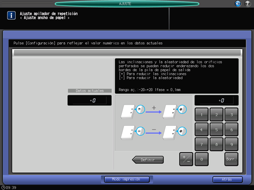 Si se debe realizar algún ajuste, utilice el teclado del panel táctil para introducir el valor de ajuste.