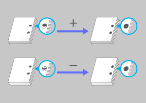 Rango de ajuste: de -20 ([Para reducir la aleatoriedad]) a +20 ([Para reducir las inclinaciones]) (1 paso = 0,1 mm)