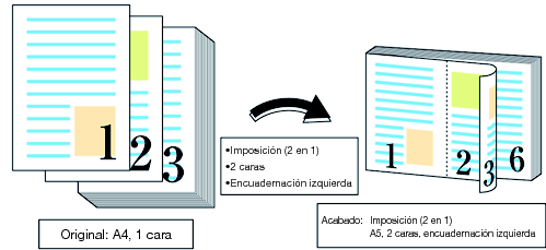 Imponga un documento PDF tamaño A4 con 32 páginas en papeles A4 2 1 (tamaño reducido) y, a continuación, imprima con dos caras.