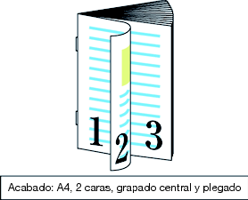 Ejemplo: Aquí la explicación presupone que se ha definido papel (A3: Borde Corto) en la [Bandeja 2].