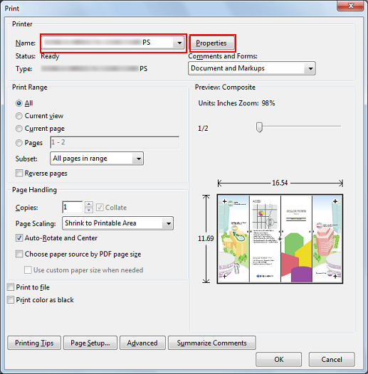 Seleccione la impresora que se va a utilizar para imprimir y haga clic en [Propiedades].