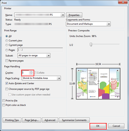 Se inicia la impresión. Cuando haya finalizado la impresión, vaya a "Comprobación del acabado" y compruebe el acabado del documento impreso.