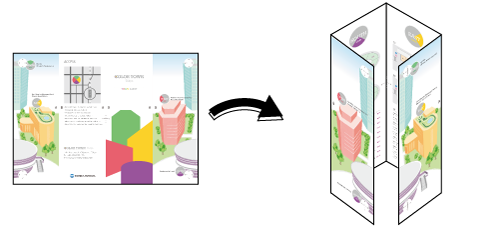 Instale la unidad de plegado FD-503 y, a continuación, acabe el documento PDF con plegado tipo puerta.