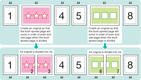 Para la impresión de datos de originales, incluidos documentos en A4 y A3 o documentos en A3 con acabado de libro abierto.