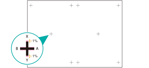Imprima el original y mida la desalineación en las caras anterior y posterior mediante una lupa con escala.