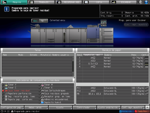 [Preparada para imprimir / Cambie la caja de tóner residual]