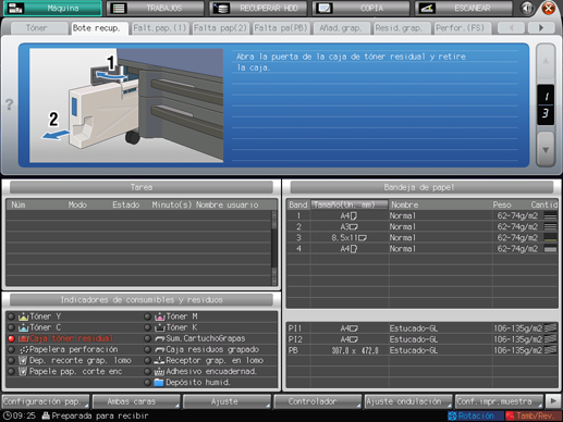 [Caja tóner residual llena / Cambie la caja]
