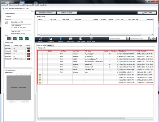 Puede utilizarse Job Centro en un ordenador para editar la configuración de impresión de las tareas retenidas.