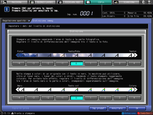 La schermata torna alla schermata [COPIA]. L'indicazione [Distinzione immag] è disponibile in [Regolaz. qualità] nella schermata [COPIA].