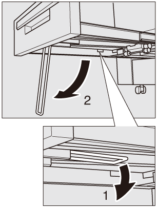 • Quando si usa il vassoio di uscita della pinzatrice a sella, accertarsi di estrarlo completamente. Aprire il supporto vassoio situato sotto il vassoio di uscita della pinzatrice a sella quando lo si estrae completamente.
