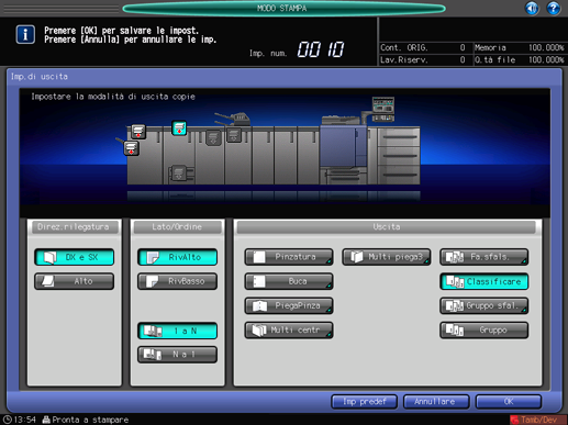 Premere [OK] nella schermata [Imp.di uscita] per tornare alla schermata [COPIA].