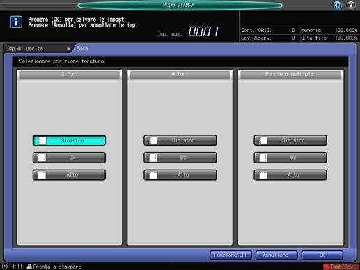 Selezionare il tasto di posizione foro desiderato in [Foratura multipla].