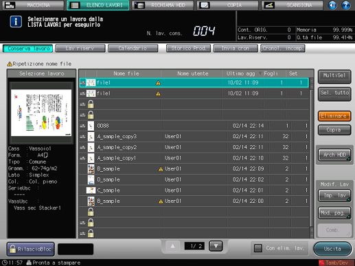 Premere la scheda [ELENCO LAVORI] per visualizzare la schermata [ELENCO LAVORI].